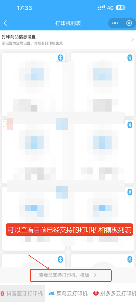 6、抖音目前支持的蓝牙打印机型号以及快递模板,可以通过小程序打印机列表查看。